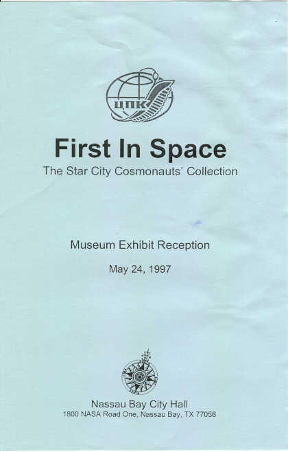 First In Space Program of the official museum exhibit reception held at Nassau Bay City Hall on May 24, 1997. The function was well attended by American astronauts, Russian cosmonauts, and many dignitaries from the space community. (05.24.97) |