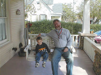 Duncan invites David to sit on great grandma's porch swing (in Fayetteville).