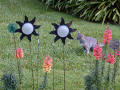 cat, and garden decorations. The 'suns', a garage sale find, have candle holders