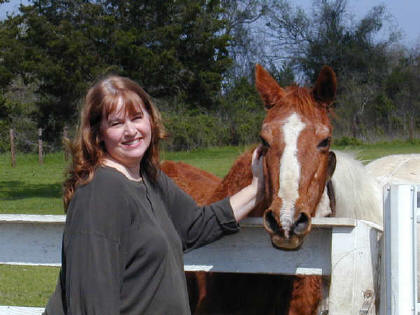 Linda & Misty visit at the pasture gate.