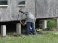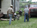 Here the crew digs up the turf so that footing pads can be laid on firm soil. (04.23.02) |