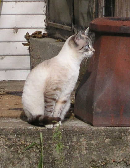 Scout leans forward as she intently watches a strange truck on the neighbor's road.