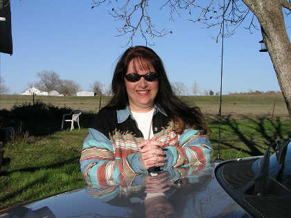 Linda poses for a photograph before we leave to pick up some hardware in Bastrop.