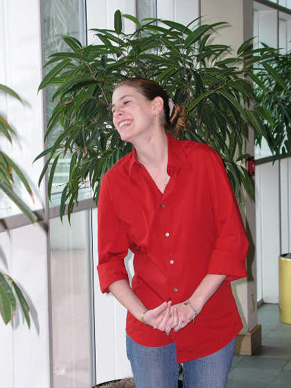 David will be taking the wedding photographs and has Megan pose for a few practice shots.