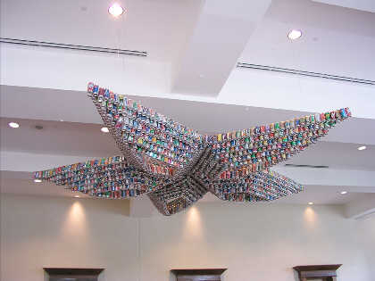 A unique decoration in the Convention Center made entirely from aluminum cans.