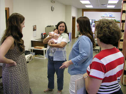 Linda shows off her daughter and granddaughter to the ladies at the title company she works with in LaGrange.