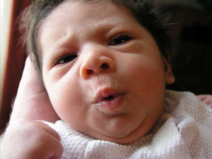 Back in our room Astrid is wide awake and making faces at David.