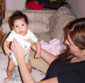 Megan asks Astrid if she wants to stand on the floor.