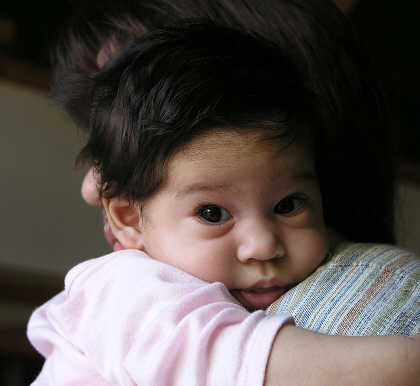 Astrid holds Linda and watches David.