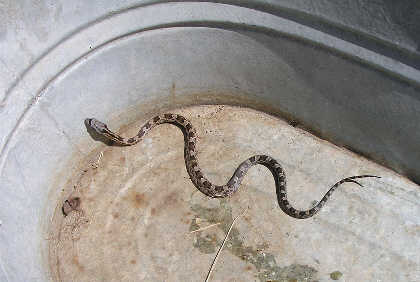 This hatchling Rat Snake (elaphe obsoleta) fell on David outside the backdoor of the farmhouse.