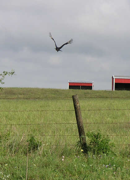 David spooked this giant black vulture across the road from Rain Creek Farm.