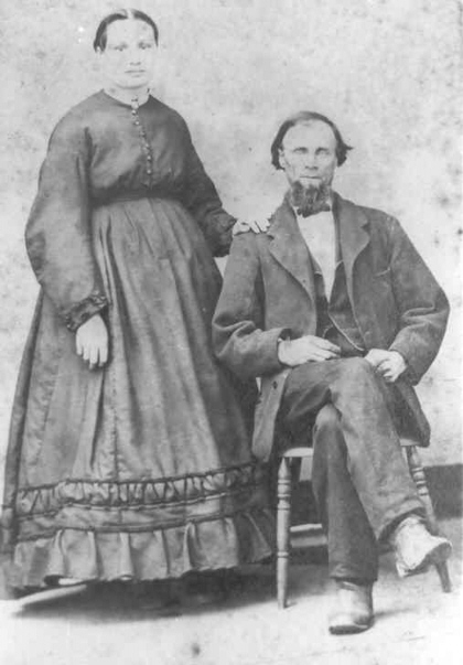 This is the wedding photo from 1864. Mary was born Nov. 7, 1844 so she would have been 19 at the time. She was literate and fairly well educated for the time. She also was a mid-wife, that is she helped the neighboring women when they were giving birth. It wasn't until 1873 that I have record of a child from them. Rumor has it she miscarried several times before she started having children. They had the following: